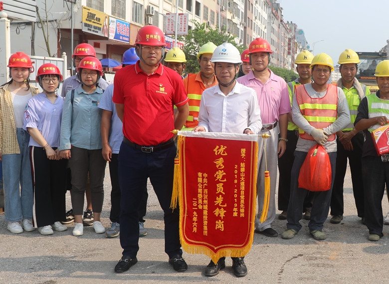 在項目現(xiàn)場,蘭乾雄為戰(zhàn)斗在一線的工人們發(fā)放了西瓜、清涼飲料,并與工人代表拉起了家常,一一詢問了工人的家庭、收入及工資發(fā)放等情況。他說到,正是因為有一線工人們的努力和堅守,我們的一些重點(diǎn)工程和項目才能順利向前推進(jìn),他們是最值得尊敬的人。同時,蘭乾雄為姑婆山大道項目頒授了“2018-2019年度優(yōu)秀黨員先鋒崗”旗幟,肯定了他們?yōu)轫椖拷ㄔO(shè)的付出,鼓勵他們繼續(xù)充分發(fā)揮黨員先鋒崗先鋒模范作用。