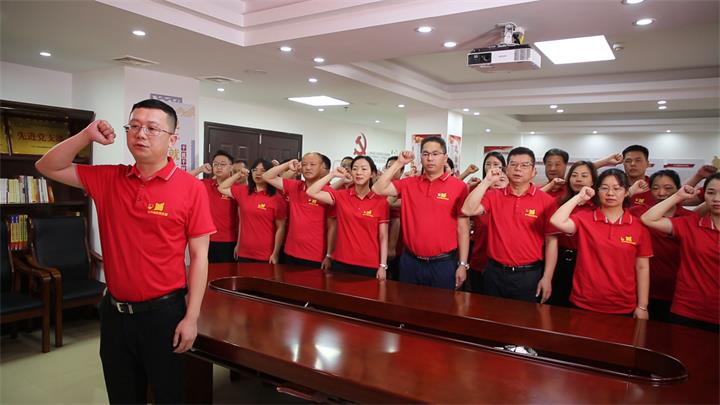 活動伊始,支部書記陳桂軍帶領(lǐng)全體黨員面對鮮紅黨旗,舉起右手,莊嚴(yán)宣誓,重溫入黨誓詞,“我志愿加入中國共產(chǎn)黨,擁護(hù)黨的綱領(lǐng)......”。黨員們聲音洪亮,情緒激昂,每一句入黨誓詞都在提醒著黨員們,要更加堅定理想信念,堅守行為準(zhǔn)則,踐行黨員標(biāo)準(zhǔn),發(fā)揮黨員先鋒模范作用,用實(shí)際行動彰顯黨員本色。