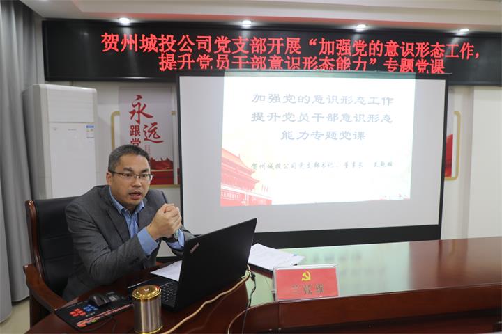 12月15日,城投公司黨支部開展“加強黨的意識形態工作,提升黨員干部意識形態能力”主題教育黨課活動?;顒佑晒军h支部書記、董事長蘭乾雄講授黨課,公司支部全體黨員、發展對象、入黨積極分子、全體團員等干部職工40余人參加活動。