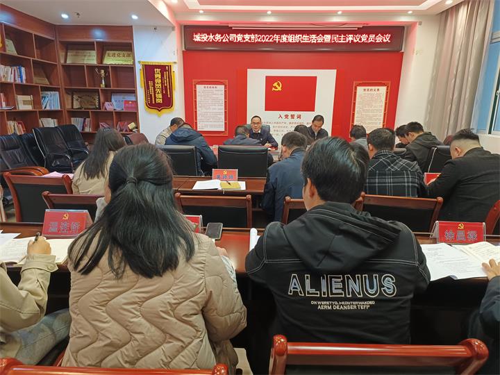 水務(wù)公司黨支部開展組織生活會,會議報告了2022年度黨支部工作情況和查擺問題整改落實情況,并以黨支部書記帶頭作個人檢查剖析,各黨員圍繞組織生活會主題深入開展批評和自我批評的方式,要求支部黨員以此次組織生活會為新的起點,繼續(xù)貫徹落實集團黨委的決策部署,立足工作實際,積極擔(dān)當(dāng)作為,為全方位推動集團高質(zhì)量發(fā)展貢獻水務(wù)力量。