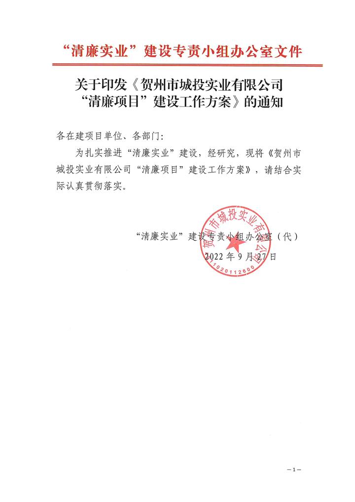 賀州城投實業(yè)公司:四位一體建設(shè)“清廉項目”